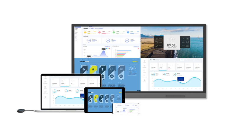 Connect to your wireless network and mirror your devices screen effortlessly. Mirroring includes touch function allowing you to control your devices all the way from the infrared touch flat panel. Transfer files from your mobile phones using the E-SHARE App or use it as a remote control to control the main screen while you were walking around the room.
